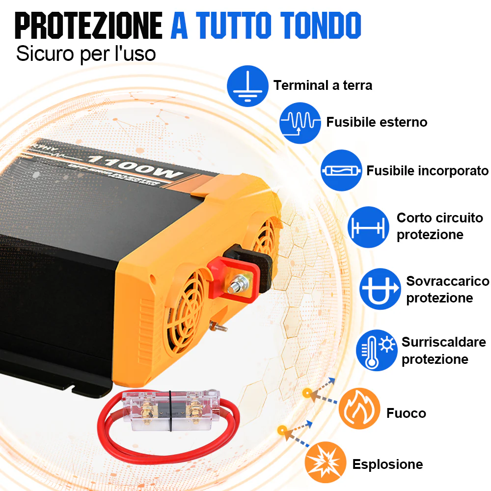 | Performance di partenza continua (W): 1100W + 18W USB | CapacitĂ di sovratensione (prestazioni migliori): 2200W |